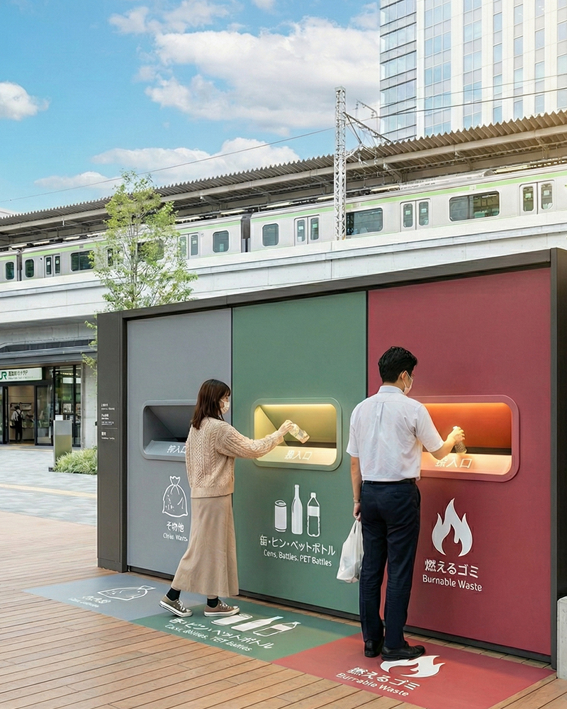 「Color Nudge Clean City」の実証において、ゴミ分別を「ただ捨てる行為」から「資源を循環に戻すスイッチ」へと再定義する取り組みを行っています 。ゴミ箱の色彩をリデザインし、正しく分別した瞬間にLEDリングが光り、心地よい音を鳴らすという五感へのフィードバックを導入 。これにより、利用者が直感的に迷わず分別できるだけでなく、「自分は今、いいことをしている」というポジティブな感情を引き出し、無意識レベルでの行動変容を促します。