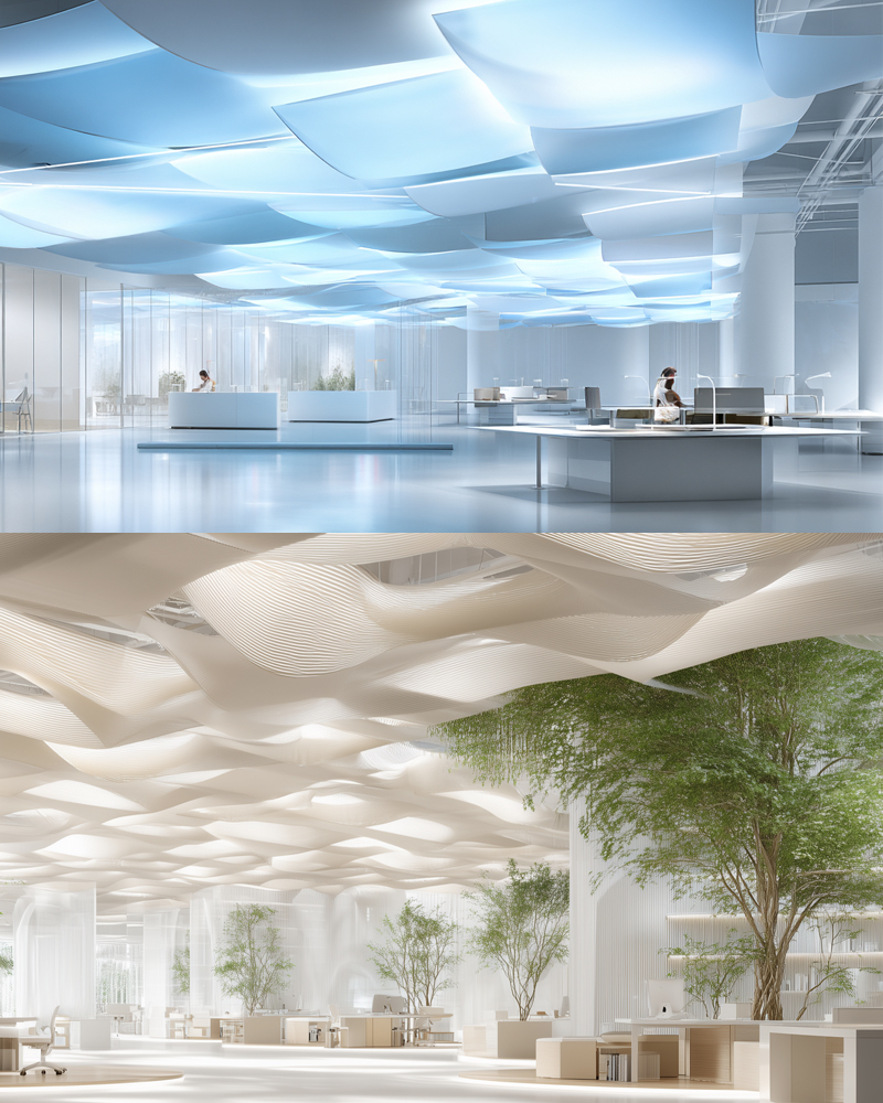パネルが波打ち、表面積と空気層が増えることで吸音性が向上。深い思考をサポート。